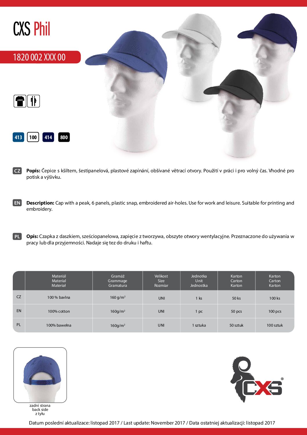 Charakterystyka- Czapka z daszkiem CXS Phil :