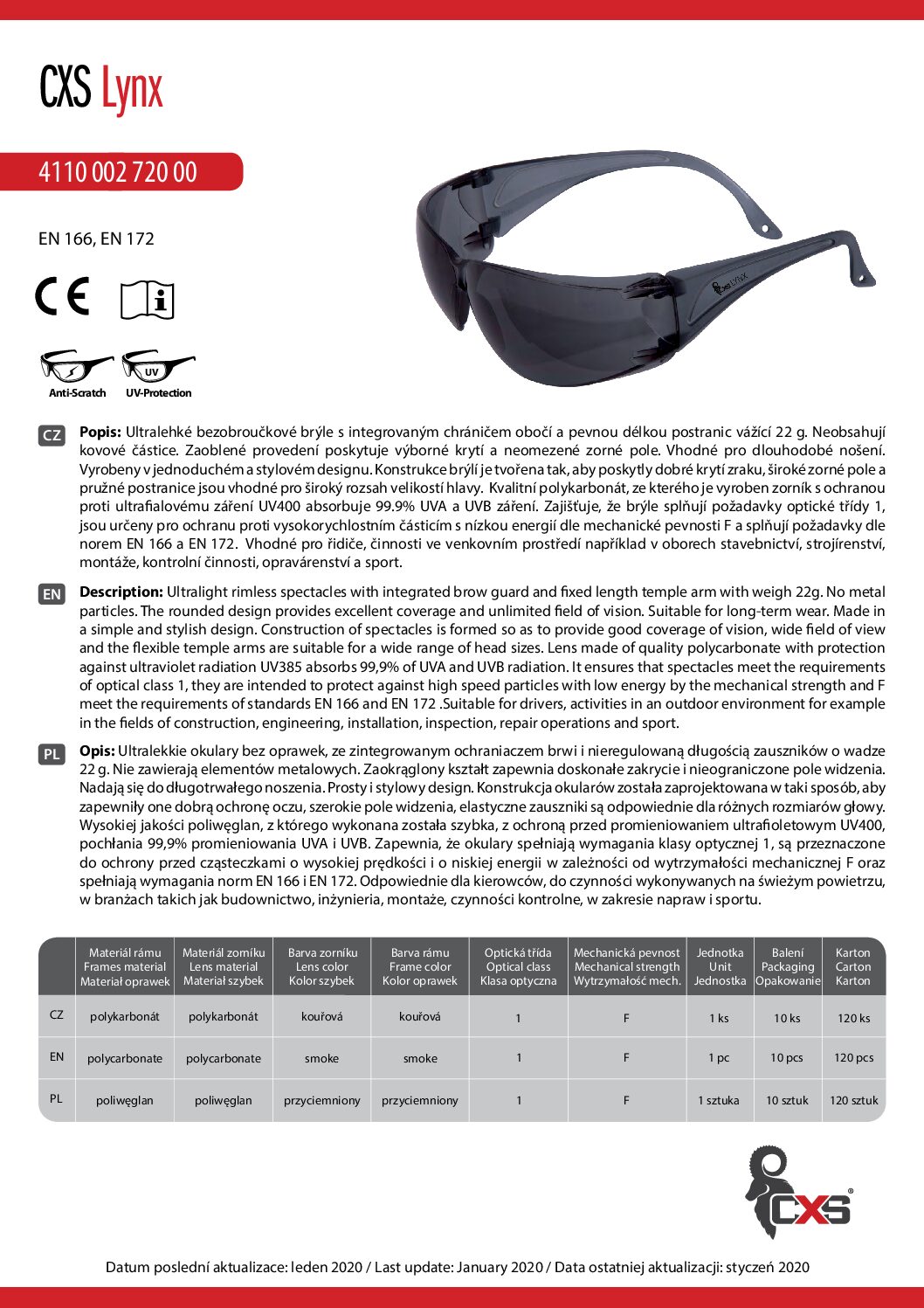 Charakterystyka – Okulary ochronne CXS Lynx przydymione :