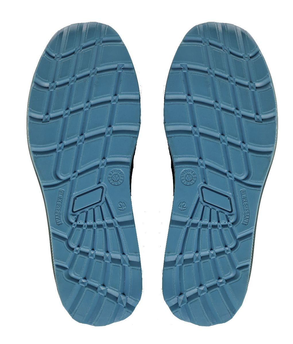 Antypoślizgowa podeszwa z gumy i pianki EVA zapewnia amortyzację oraz świetną przyczepność na różnych nawierzchniach. Model spełnia wymagania kategorii O1 zgodnie z normą EN ISO 20347, co oznacza m.in. zamkniętą piętę, właściwości antystatyczne i pochłanianie energii w części piętowej. Półbuty dostępne w rozmiarach od 35 do 48 (Rozmiar EU).