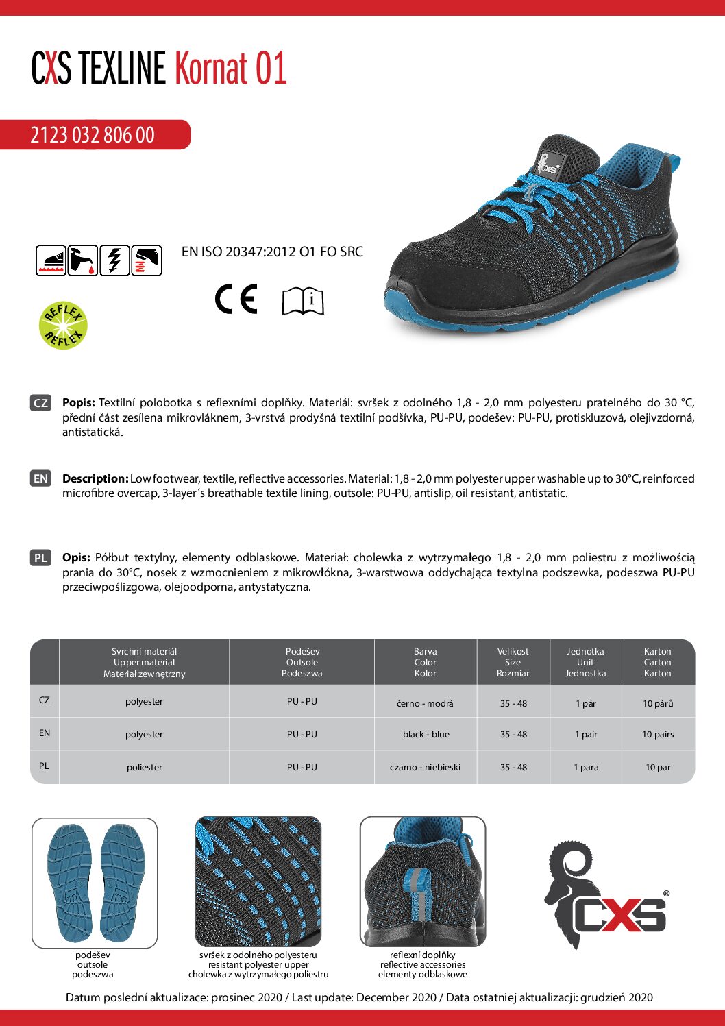 Półbuty CXS Texline Kornat O1 to lekkie, wygodne i funkcjonalne obuwie robocze stworzone z myślą o codziennej pracy w suchym środowisku.
