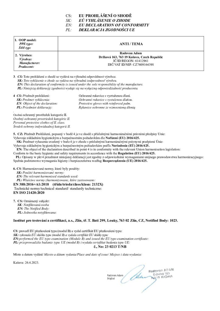 Rękawice posiadają certyfikat zgodności CE kategorii II.