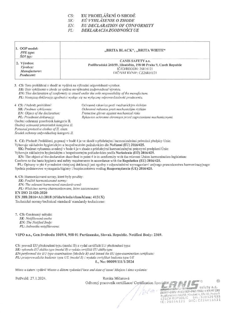 Rękawice posiadają certyfikat zgodności CE kategorii II.