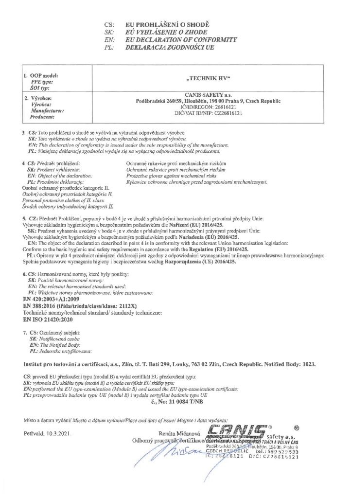 Charakterystyka – Rękawice CXS Technik HV :