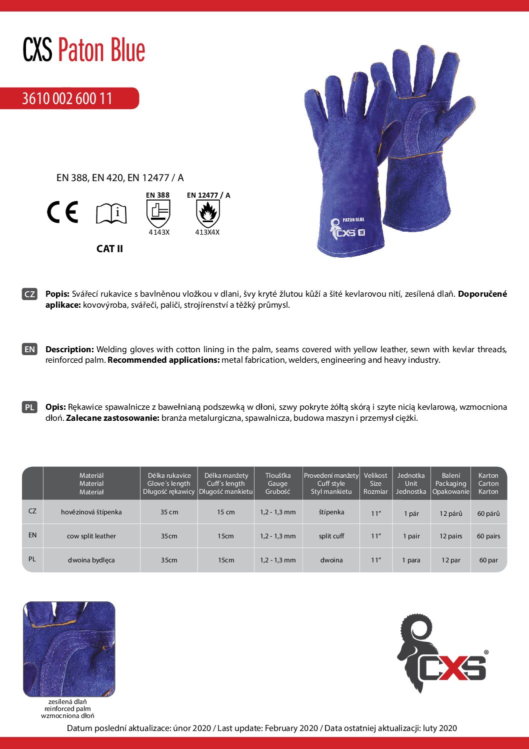 Charakterystyka – Rękawice spawalnicze CXS Paton Blue :