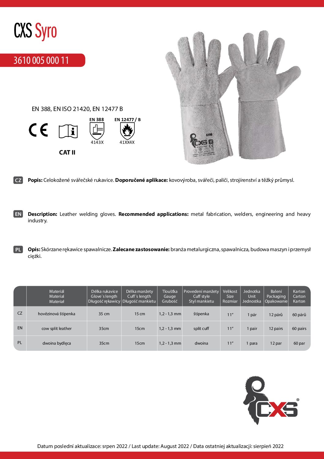 Charakterystyka – Rękawice spawalnicze CXS Syro :