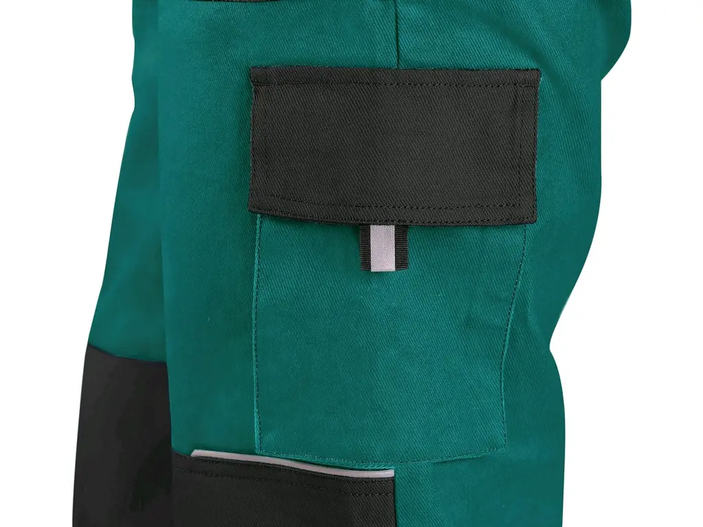 Połączenie głębokiej zieleni z klasyczną czernią nadaje spodniom nowoczesny wygląd i zwiększa widoczność użytkownika.